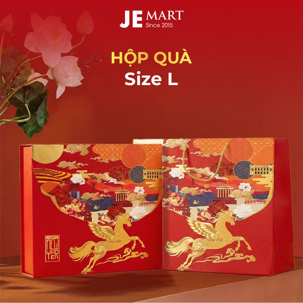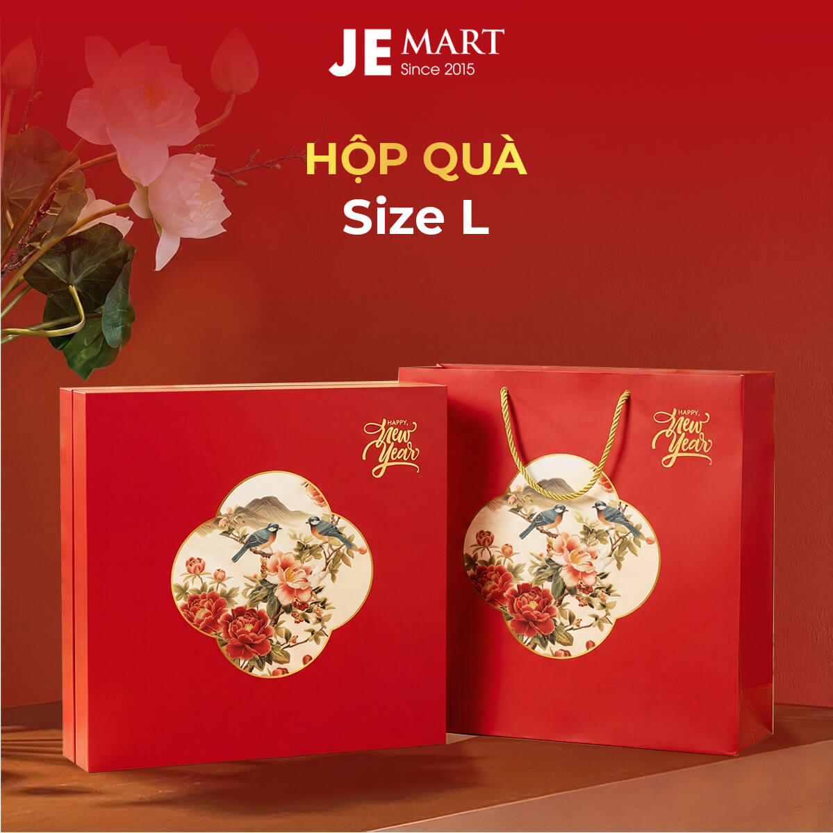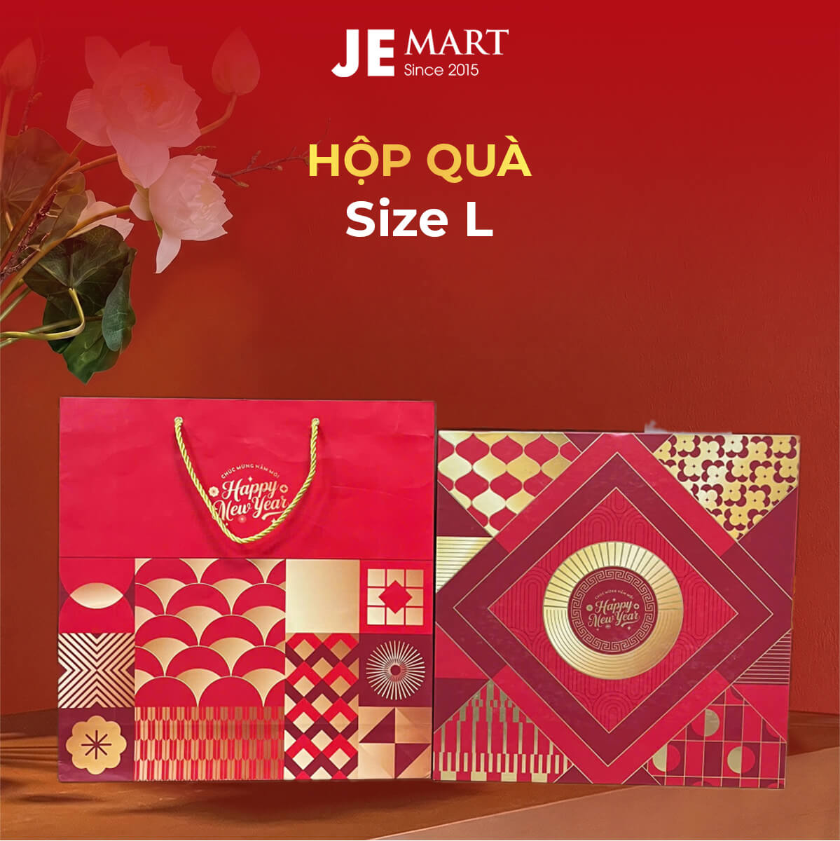 | Hộp quà Tết kèm túi giấy + Logo + Thiệp | 36×36 | ||